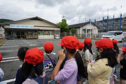 第1回の町探検では,学校から南に下って岩倉駅の方まで歩きました。探検中に「こんな店あるんや!」「あ,ここ知ってる!」などたくさんのつぶやきがありました。「もっと調べてみたい!」という声も多くあり,今後の学習にも意欲的でした。