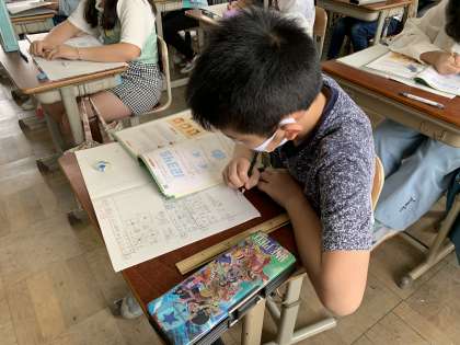 いよいよ明日は6年生最初のテストの日。教科は算数,単元は「対称な図形」です。今日は学習内容を振り返りながら練習問題を解きました。明日のテストは,自分の目標点数を意識して,精いっぱい頑張ってほしいと思います。