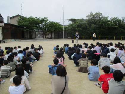 本日は学校内で火災が発生した場合を想定し,避難路の確認や移動をしました。火災において煙が如何に危険であるのかを児童に伝え,ハンカチ等で口元を押さえて迅速に非難しました。火災発生のアナウンスから5分程度で,全校児童の運動場への非難が完了しました。星の子の子供たちも「おはしもて」を守り,きちんと列に並ぶことができていました。