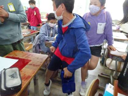 スポーツテストの握力の測定は順番に教室で行いました。