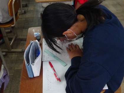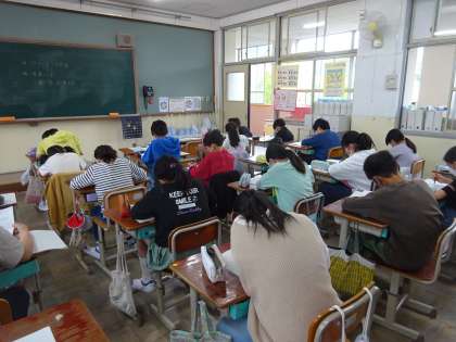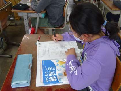 形が直方体や立法体じゃなかったり,単位を換算しないといけなかったり,難しくなってきましたが,最後まで全員解くことができました。分からないところは分からないと,素直に聞ける姿勢が素敵です。