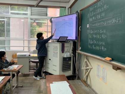 線の傾きに着目し,変わり方の大きさの違いに気付くことができました。次は,折れ線グラフを自分たちで書いていこうと思います。