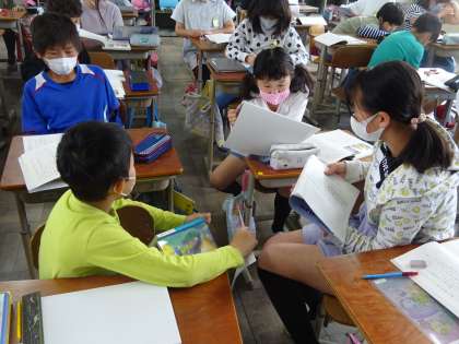 分かる部分を教科書から抜き出して,班で対話する中で深めることができました。