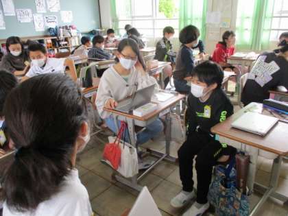 作品の鑑賞は,必ず見る視点があります。それは何か・・・友達の鑑賞ノートからいいところを見つけて話し合いました。「筆の動きに注目しているのがおもしろい!」「自分の作品と比べているのは,次まねしたい!」