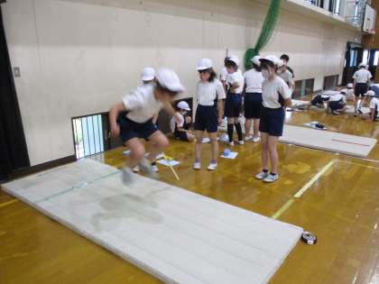 本日は,長座体前屈と立ち幅跳びを行いました。