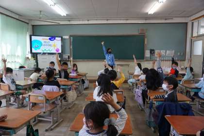 今日は2年生初めての英語活動でした。ALTのガリーバ先生に来てもらい,先生の好きな食べ物や出身地についてクイズをしつつ,楽しく英語に触れあいました。子どもたちも久しぶりの英語の学習でとても楽しそうでした。