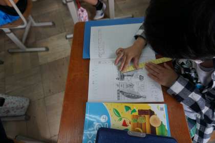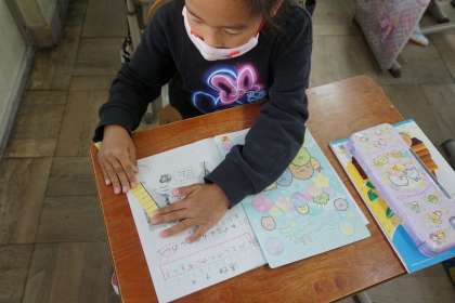 算数科「長さ」の学習では,ものさしを使って正確に長さを測ることを頑張っています。端をそろえること,ずらさないでまっすぐ測ることに注意して,ものさしを使っています。