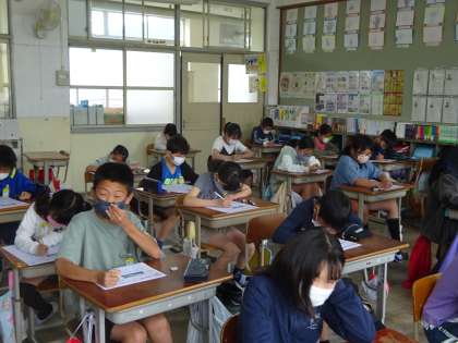 そんな思いを抱えながらテストをしている子たちを応援しています。苦戦していた子も,丁寧に小数点を移動させたり,ゼロを消したり頑張っている様子が答案から伺うことができました。