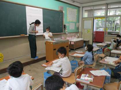 学校探検で見つけたものをクラスの友達に紹介しました。