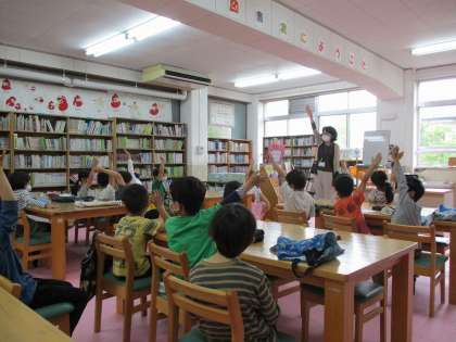 司書の土田先生に図書館のことを教えてもらって,みんな好きな本を1冊選んで借りることができました。