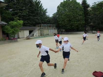 初めの学習でも,後ろを見ないでバトンパスに挑戦する姿が輝いています。
