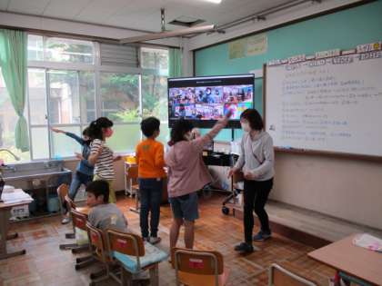 明徳小,市原野小,岩倉北小,岩倉南小,花背小の5校がオンラインで参加をしました。これまで練習を繰り返した「ツバメ」「忍者50音」のダンスを,遂に披露することができました。他校の友達と直接会うことは叶いませんでしたが,星の子の子供たちは画面越しに皆の姿を見て楽しげな様子でした。ダンスも,元気に全身を使って踊っていました。