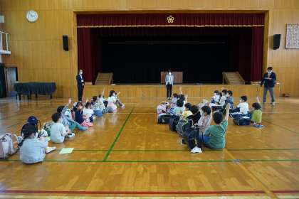 本日の放課後,放課後学び教室の開講式がありました。放課後の時間に各自がどんなことをすればいいのかを考えて,目的意識をもって取り組んでいってほしいと思います。