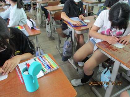 見たビデオについて,みんなで話し合いました。「1年生みんなの顔が見られて嬉しかったです。」「かわいい1年生になつかしい気持ちになりました。」「ドレミの歌はアイデアいっぱいでした。」「私はレモンを持っていたクラスが気に入りました。」「私は先生がドーンと倒すジェスチャーからドミノみたいに倒れるジェスチャーが面白かったです。」