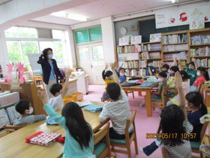 1年生の国語科「としょかんにいこう」では,図書館の利用の仕方などについて,図書館司書の先生に教えて頂き,本も借りました。子どもたちは借りた本を教室で熱心に読んでいます。