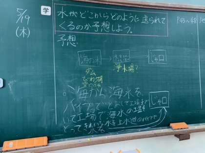 みんなの使う水はいったいどこからきているのか予想をしてみました。