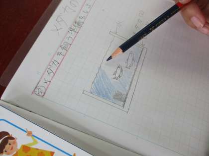 発芽の実験と合わせて,メダカを飼い始めます。そのためには何が必要かを考えました。水はもちろんろんですが,ほかにどのようなことがあればメダカを大切に育てることができるかを絵に表現しながら準備を進めました。
