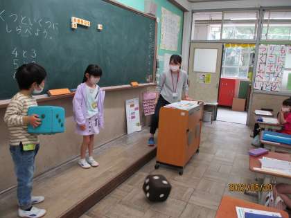 二つのサイコロの目が合わせて7になるよう,代表児童を応援する姿が見られました。