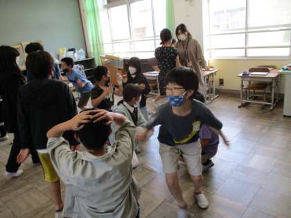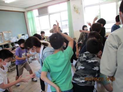 子ども達の振り返りには「ちがう学年の人とも仲良く遊べてうれしかった。」「これって山の家のレクレーションにも使えそう!」「今度習い事の友達ともやってみます。」など書かれていて,有意義な時間になったなあと思いました。次も楽しみです!