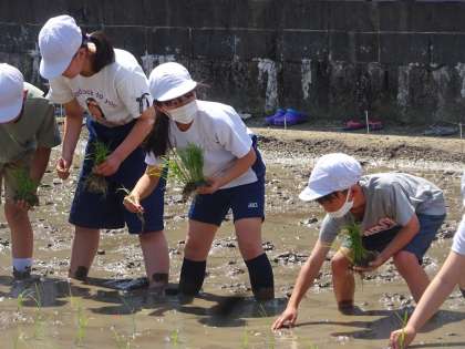 まっすぐに,しっかりと植えないとちゃんと育たなかったり,以降の作業に支障をきたします。畑の先生に厳しく指導をしていただきながらなんとか無事終えることができました。