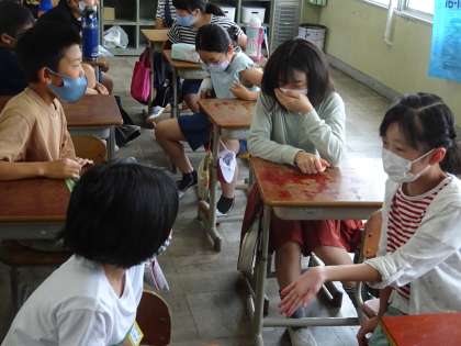 5年生でも,2人ペアで対話を行いました。