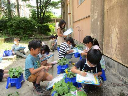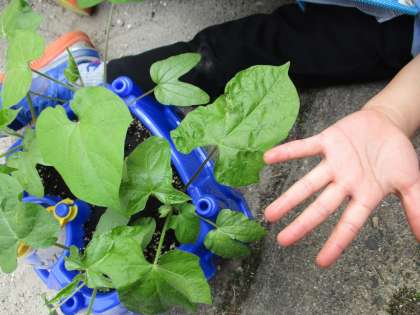 「はっぱめっちゃでてるよ!」と,さすが毎日水やりをがんばっているみんなです。