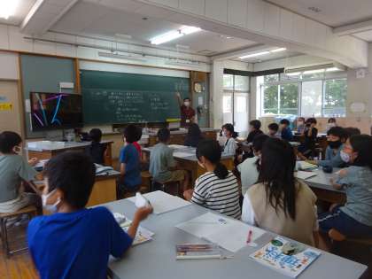 メダカを観察したり,インゲンマメの養分について考えたり,生命のつながりについての考えを深めています。