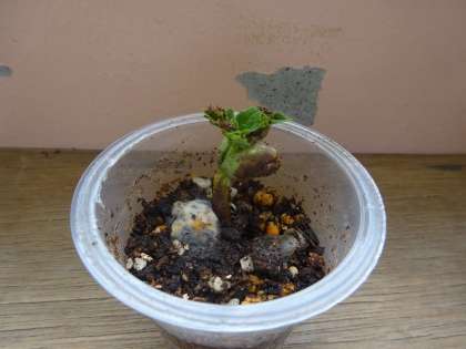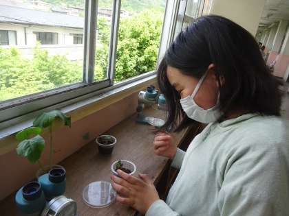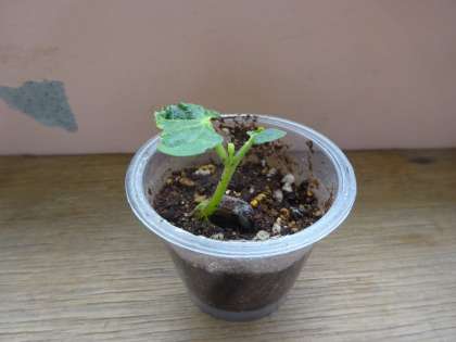 失った方が先行して発芽したものの,もうすでに子葉のある方の双葉の方が大きいようです。