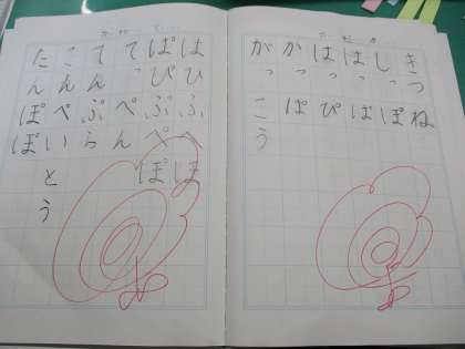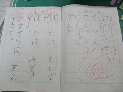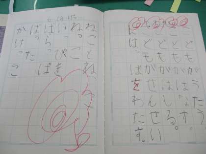 まだまだ慣れないひらがなに苦戦しながら,一文字一文字一生懸命書いています。