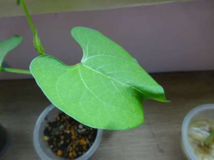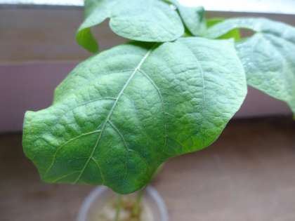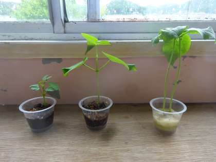 早々に発芽し育っていた右のインゲンマメですが,葉の色もあまりよくなく成長も止まっています。