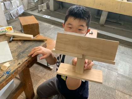 子どもたちが切った木からできそうなものを想像して作っています。どんなものができるのか楽しみです。