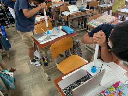 強く押したら強く押し返される!?なかなか空気を押しつぶすことができず,どうして押し返さえれるのだろうか。これからみんなで考えていきましょう!