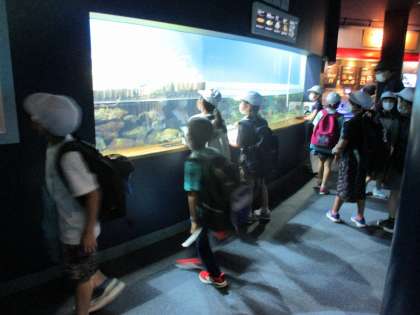 貸し切りバスに乗って,社会見学に行ってきました。行き道のバスでは,クイズをしながら琵琶湖博物館へ向かい,大原や八瀬の地名の由来を知ることができました。博物館では,班で行動しました。約束やルールを自分たちで確認し,楽しみながら,そして考えながら行動できたのではないかと思います。博物館を周った後はお弁当を食べ,芝生の広場で自由時間を取りました。本日の様子を紹介します。