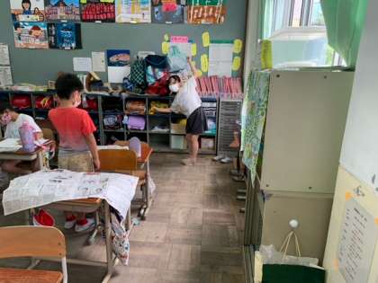 遊び係さんたちが、中間休みに新聞じゃんけん大会を開催してくれました!ルールはじゃんけんに負けるかあいこで新聞紙を半分折っていきます。折った新聞紙の上にだれが長くたっていれるかを競いました。