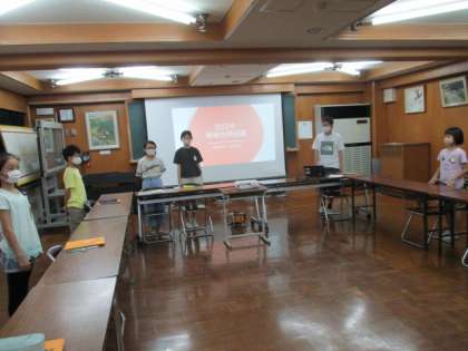 12日14時半からミーティングルームにて「第1回地域合同会議」を行いました。この会議は,3年前から始まりました。日ごろからお世話になっている地域の方数名に向けて児童会本部が全校みんなを代表し,学校の取組を話したり,双方から質問したりなど,交流をする会です。