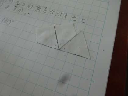 三角形の図をハサミでちょきちょき切って並べてみました。