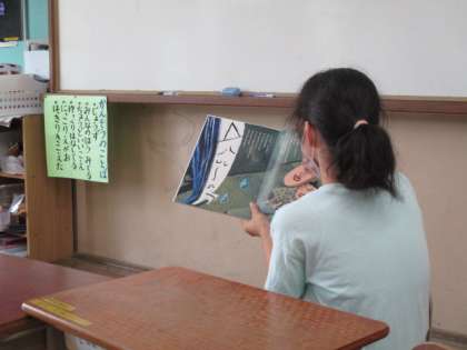 星の子の6年生が,クラスの友達に絵本の読み聞かせをしてくれました。おじいちゃんと孫の旅先での出会いを描いた『いいから いいから2』を,上手に読んでくれました。絵本が大好きな星の子の子ども達は,釘付けになって読み聞かせを楽しみました。