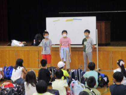 8時40分から出発式を行いました。司会も子どもたちで行い,やる気いっぱいです。楽しい思い出をつくってきます。