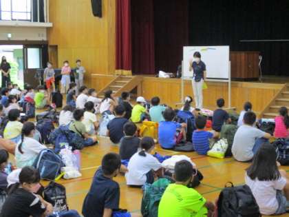「今日から4年生が1泊2日で若狭湾青少年自然の家へ宿泊学習に行きます。」