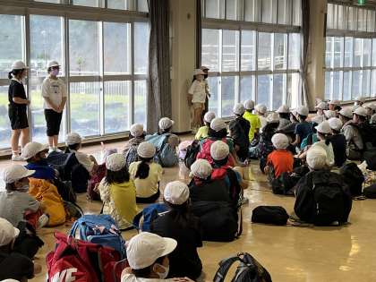 若狭湾青少年自然の家に到着し,入所式を行いました。自然の家のスタッフの方からは,自然と共にお友達のいいところをたくさん見つけてくださいとお話をいただきました。