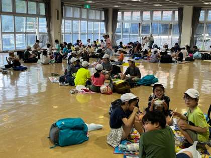 昼食です。お家から持たせてもらったお弁当を楽しくいただいています。
