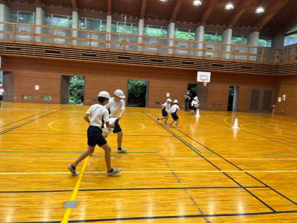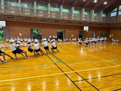雨のため,今日は海に入ることをあきらめて,トビーホール(体育館)で明徳オリンピックを開催しました。