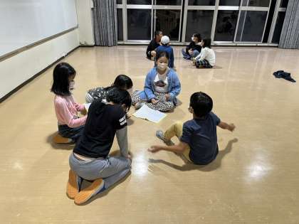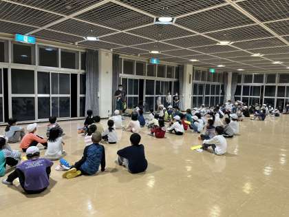 夜のふりかえり。班ごとに1日を振り返り,班長がみんなの前で発表しました。みんな元気に1日を終えました。