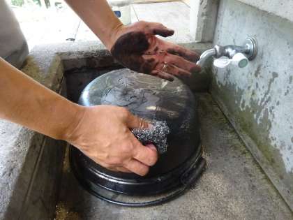 野外炊事も大切ですが、同じくらい大切なのが後片付けです。