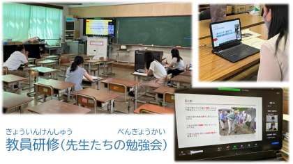 先日は、オンラインでの研修に参加しました。明徳小学校からも2人の先生が、京都市全体の先生にむけて実践発表をしました。