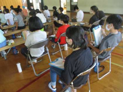 今日は広島県から被爆体験伝承者の方に来ていただき、講話を聴きました。自分たちがインターネット等で調べるだけではわからなかったようなことも聞くことができ、貴重な経験となりました。休憩時間には積極的に質問に向かうなど、自ら学びを深めようとする姿が見え、感心しました。