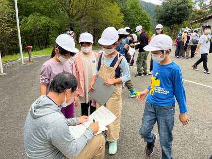 雨があがり,2つ目のプログラム「オリエンテーリング」が始まりました。オープニングクイズに手間どって,なかなかスタートできない班もありましたが,追い上げが楽しみです。班で協力してポイントを見つけ,問題を解いていきます。