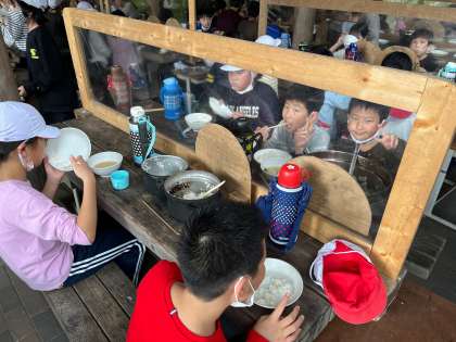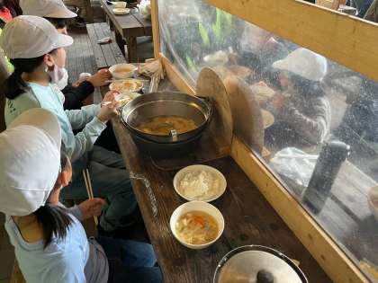 にんじんが少しかたかったり,ご飯がこげたりした班もありましたが,自分たちでつくった豚汁&ご飯は格別でした。