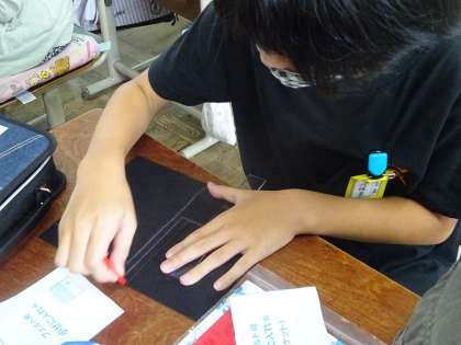型紙作りやボタン付けに四苦八苦しながらも頑張って制作中です。