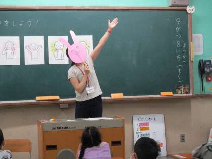 1年生の英語活動では「あいさつをしよう」という学習をしました。